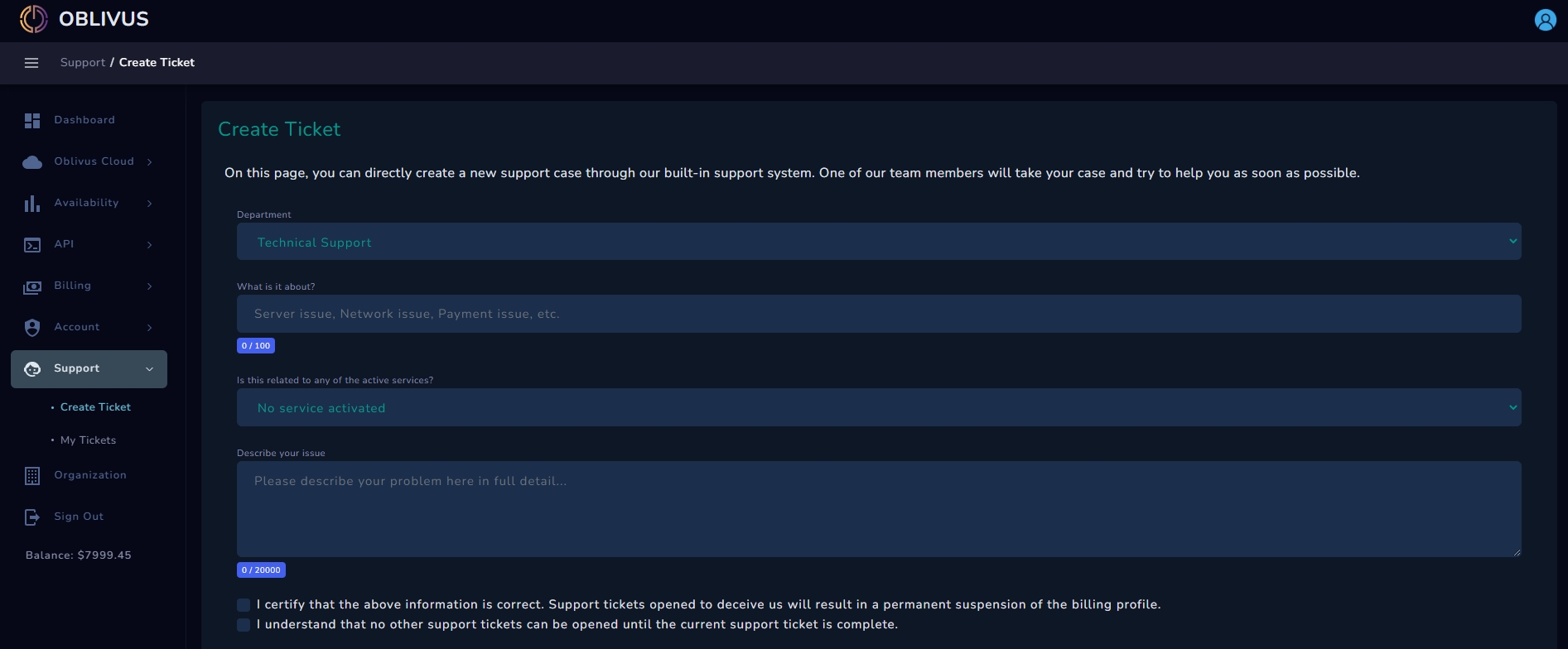 - Support Oblivus is committed to creating a straightforward and clear system to minimize user problems. In addition to the service we provide, we have created separate documents for API and company service usage. However, if you have any problems or suggestions, we also offer an integrated support service.